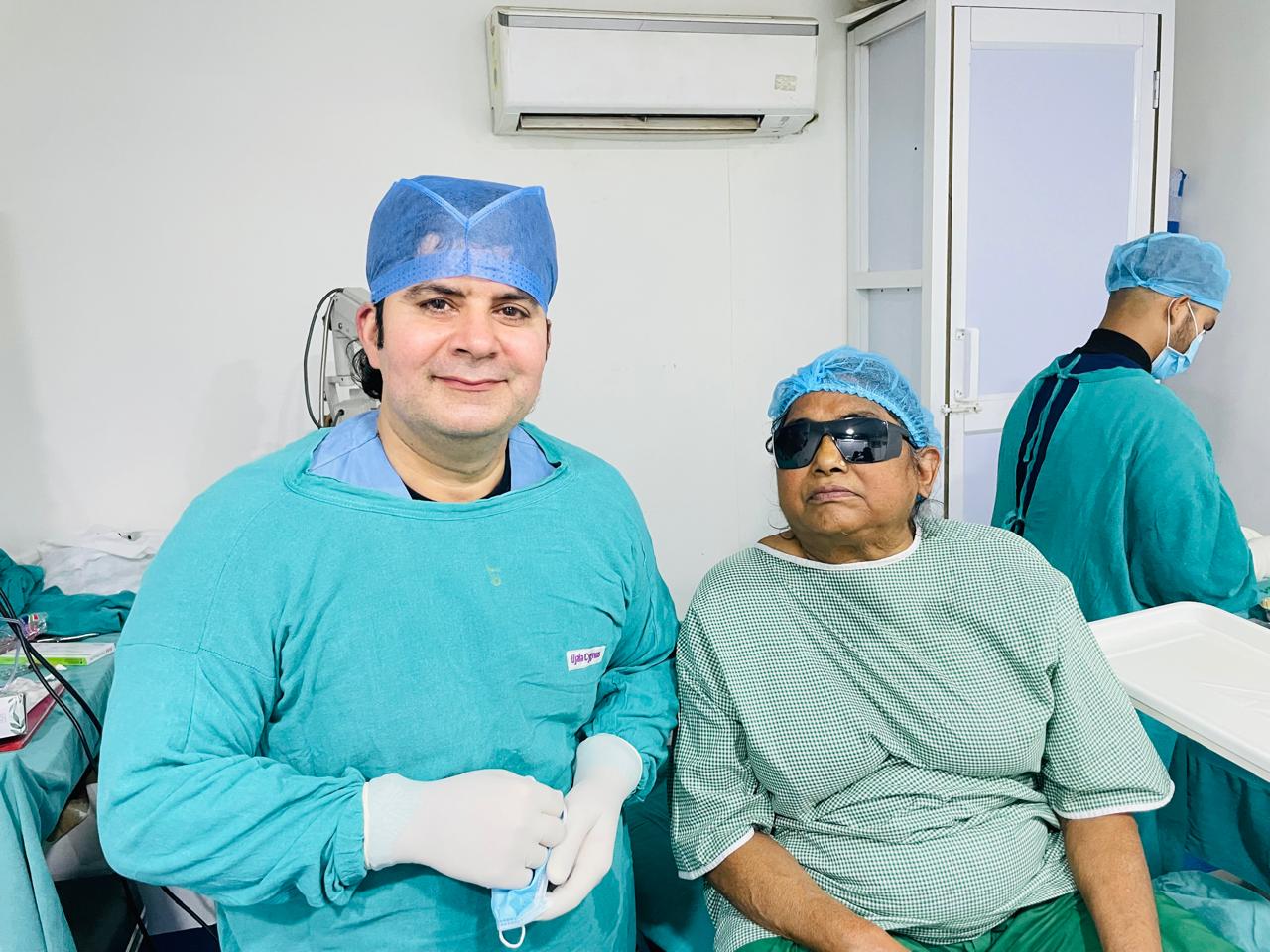 Mrs. Kanti Devi visited us in the morning for cataract surgery. The procedure was performed using topical anesthesia, without injection and without bandage. She was comfortable throughout and discharged the same day.